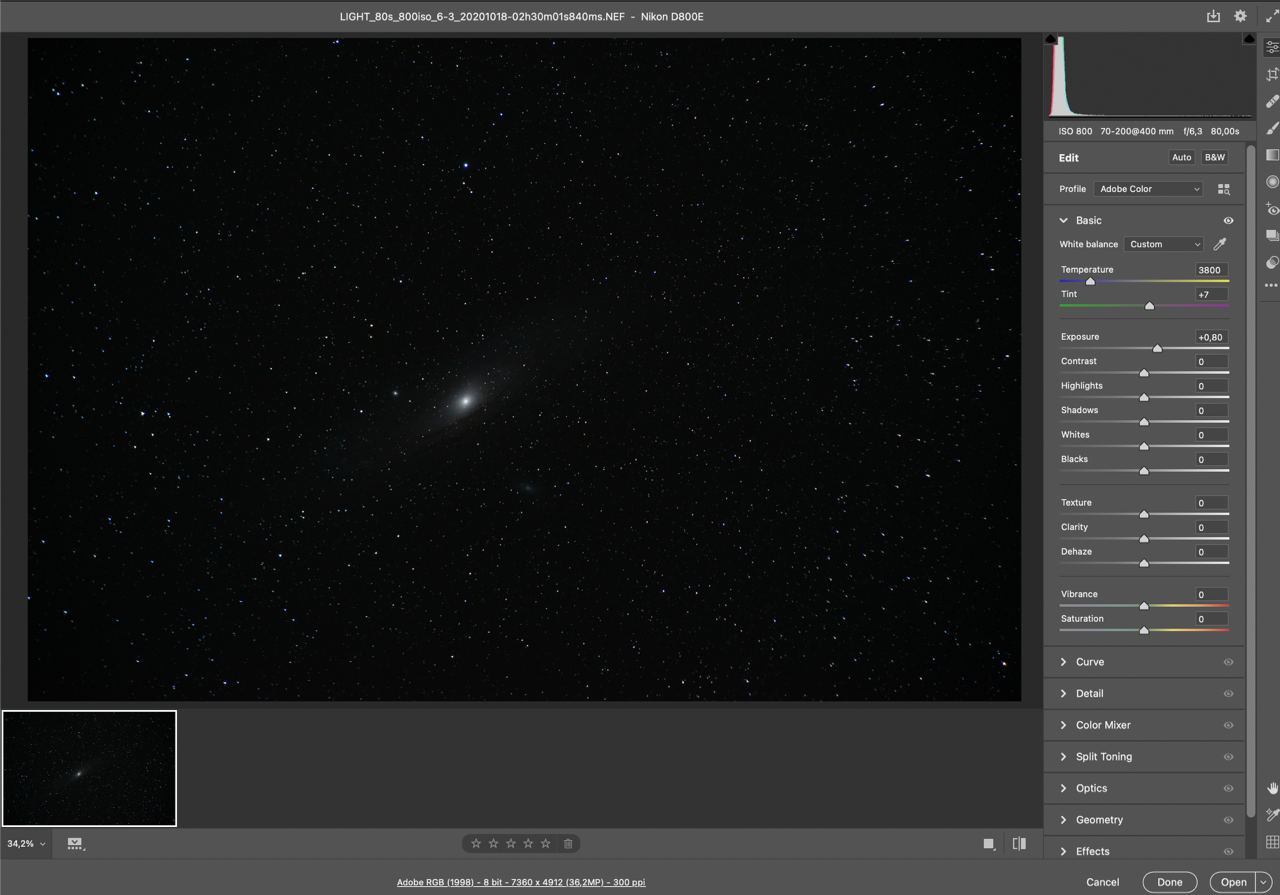 И скинь для сравнения одну из фоток что использовал для стека. Чтобы видеть что было и что стало