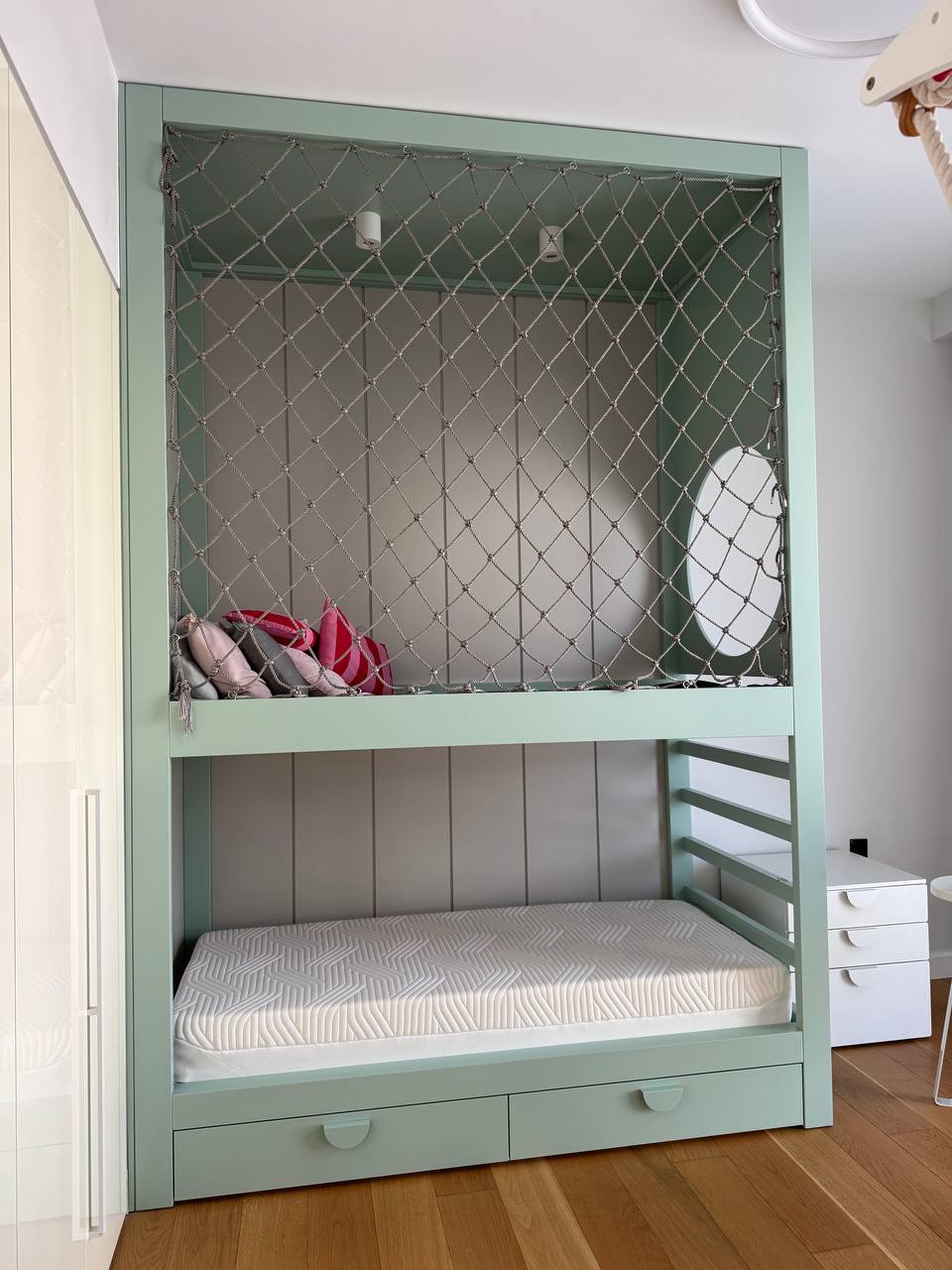 Но! Высота 310 см. Теоретически, имея нужное оборудование для распиловки, можно высоту кровати сделать под ваш размер.