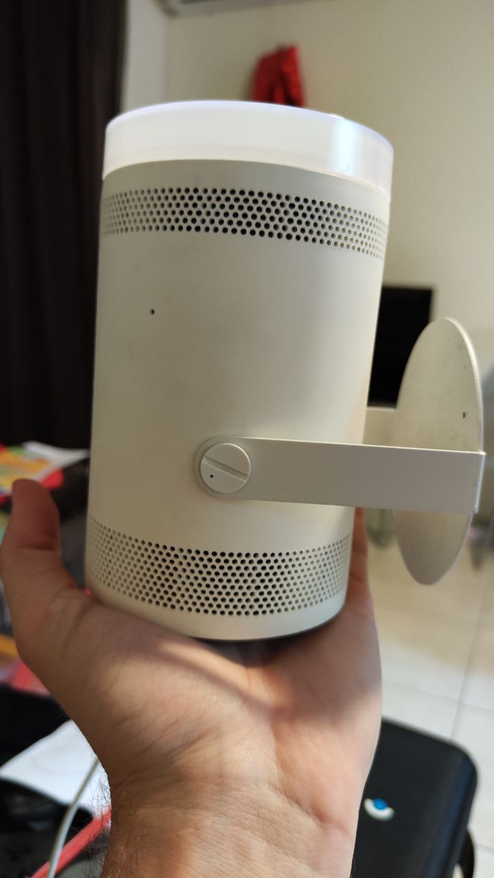 Зато дома занимает очень мало места (которого не то, чтобы много на съемной квартире), можно быстро переносить в любую комнату, а также проектить на потолок (внезапно оказалось удобно).