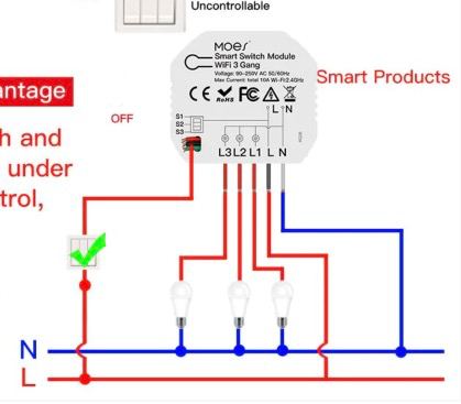 Эта схема получше - она не подразумевает что фаза должна выходить из умного свича и уходить в физический