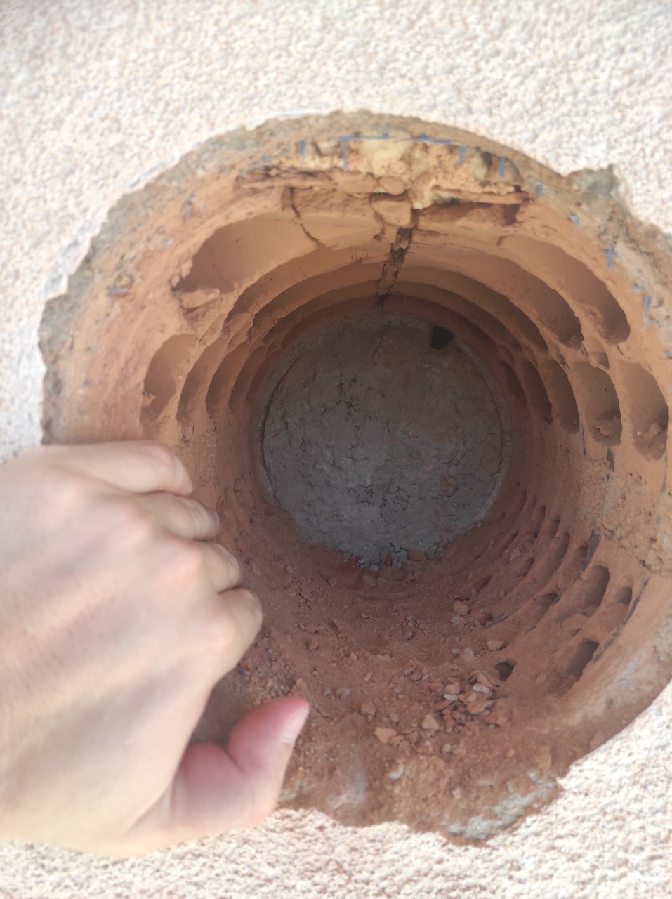 Дырку 180 мм (под рекуператор /фильтр) бурил в керамических блоках снаружи.