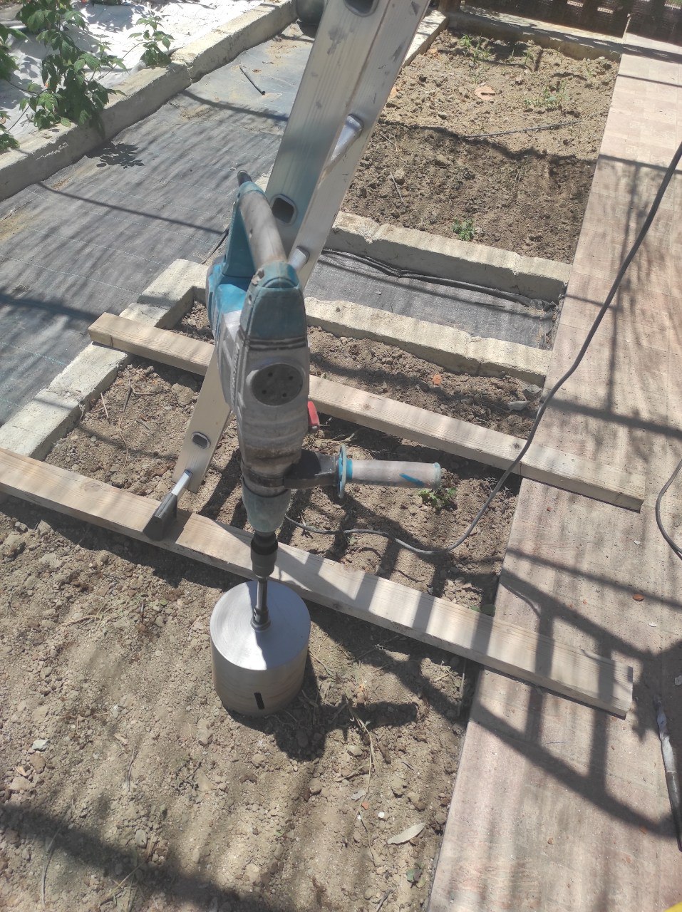 Проблем с перегревом коронки не было. Но перфоратор с коронкой тяжёлые день вчера был жаркий, так что я делал при сверлении перерывы, посидеть под кондиционером, попить холодной воды.