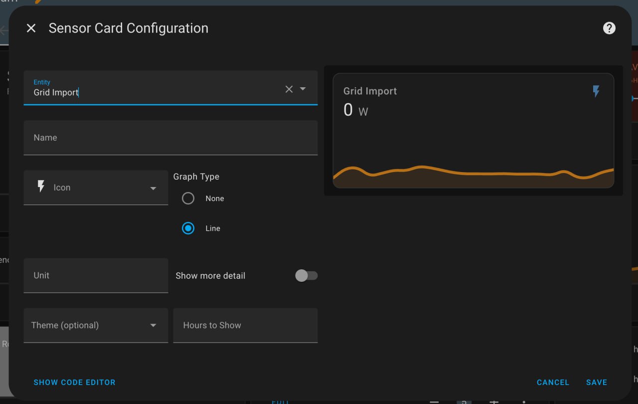 я похоже нашел способ проще, использовать вкладку energy, там виджеты уже правильные нужно только сенсоры настроить