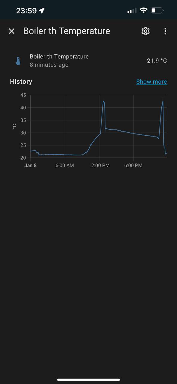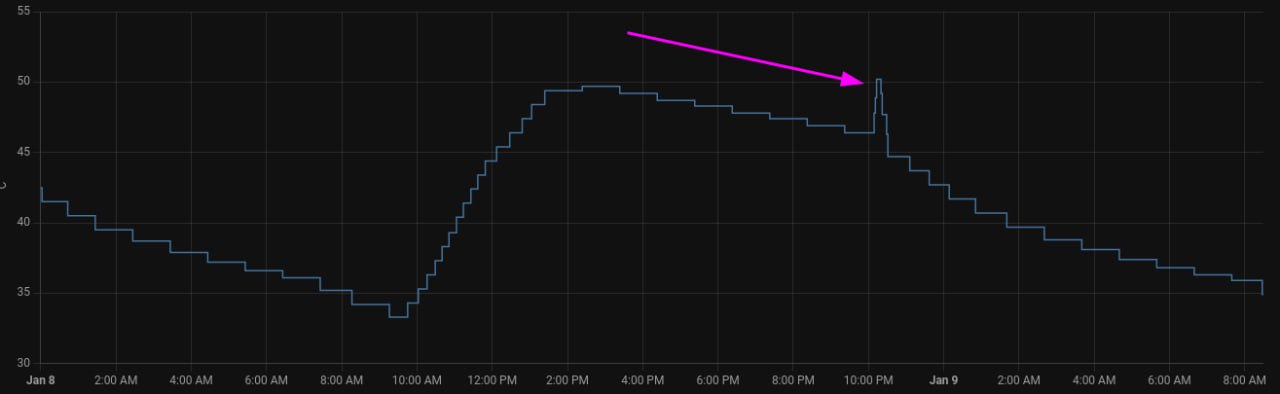 Я пока тестировал его в руках, охлаждая и согревая датчик, он слал каждую минуту данные