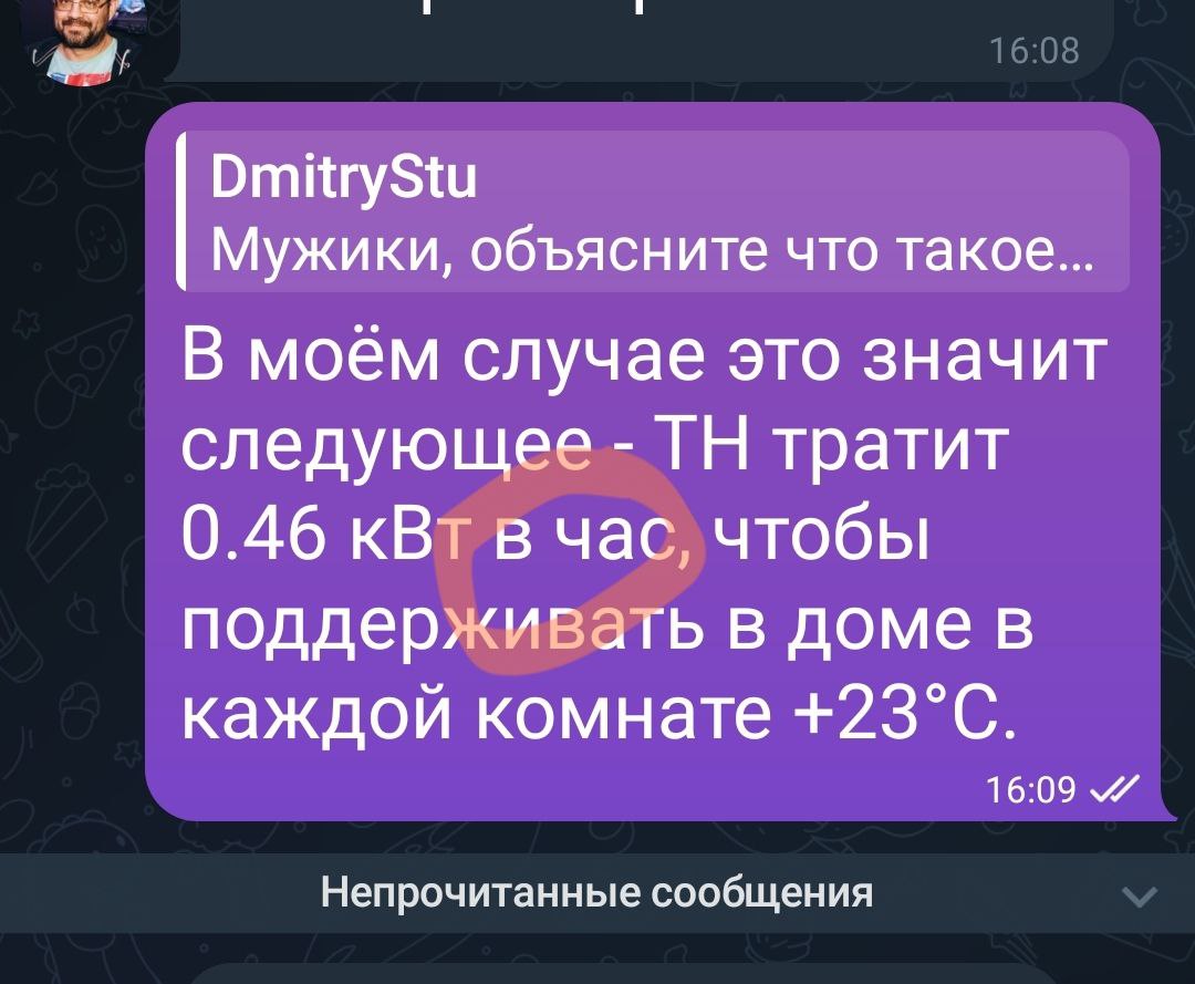 В моём случае это значит следующее - ТН тратит 0.46 кВт в час, чтобы поддерживать в доме в каждой комнате +23°С.
