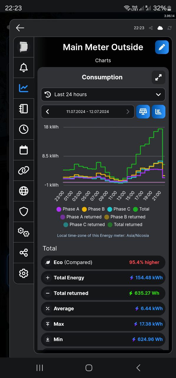 Ещё стоит 10квт net metering, я надеюсь, что на время без солнца оно будет запасать