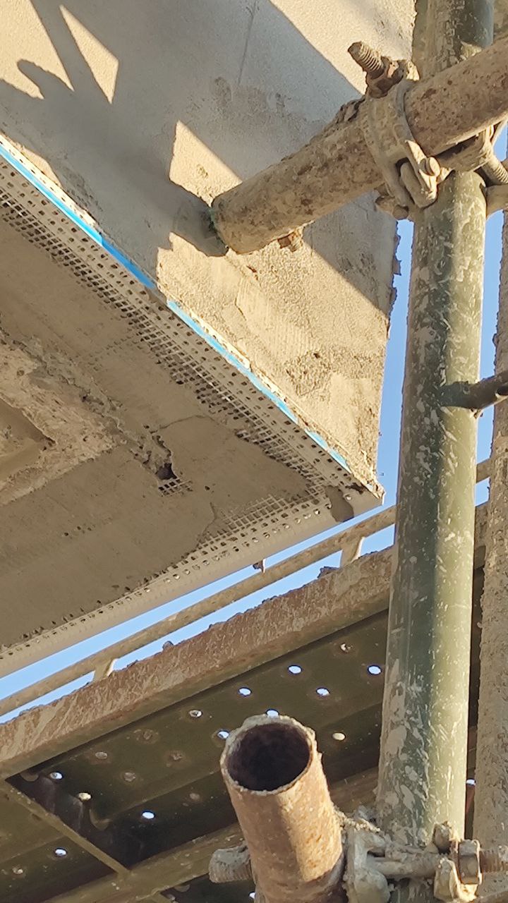 Другой участок фасада. На том где розовая сетка внизу нет следов клея