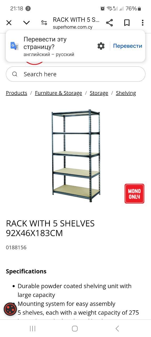 Я взял в суперхоуме металлический стеллаж нужной глубины (в Никосии был в продаже частями ножки, полки, крепеж) и разрезал полку болгаркой. Вбил части полки друг в друга и скрепил болтами.
