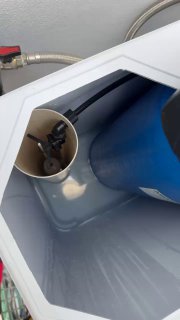 Да, похоже бак для рассола - именно белый цилиндр. Не очень понятно что там за поплавок, и почему в нём не видать соли. По картинке уровень соли в нём должен быть заметно выше уровня рассола, чтоб рассол получался насыщенным.