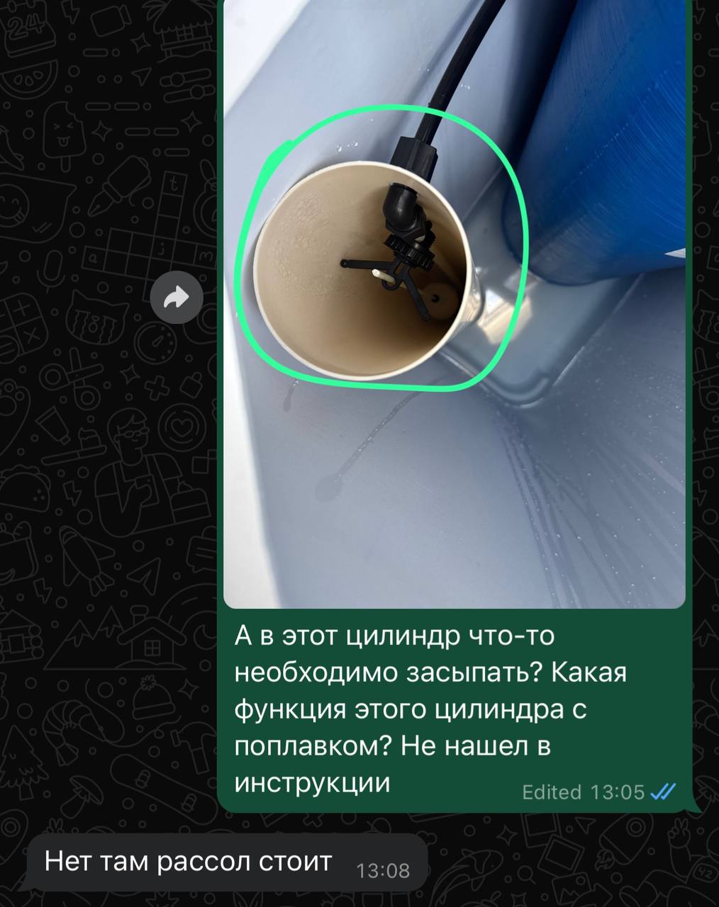 как думаете в белый цилиндр уместятся два мешка соли? я уж молчу про то что все умягчители с единым баком - одинаковые - и нигде нет отдельной емкости для рассола