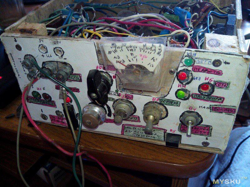 судя по симметричной расстановке компонентов - это наверное что-то 2-канальное со звуком? но при этом все провода не экранированные и уж больно много потенциометров и тумблеров. какая-то примочка для гитары?