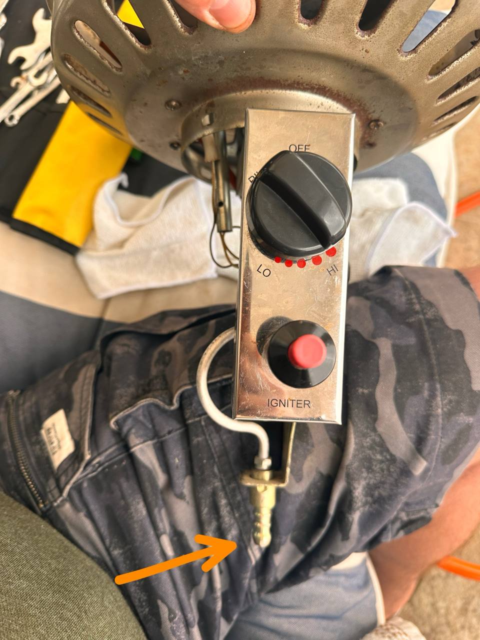 Если это прям первая подача газа - нет. У вас наверху явно торчит датчик пламени, а значит в таком положении если дуть - дуться не должно. Нужно рукоятку надавить скорее всего.