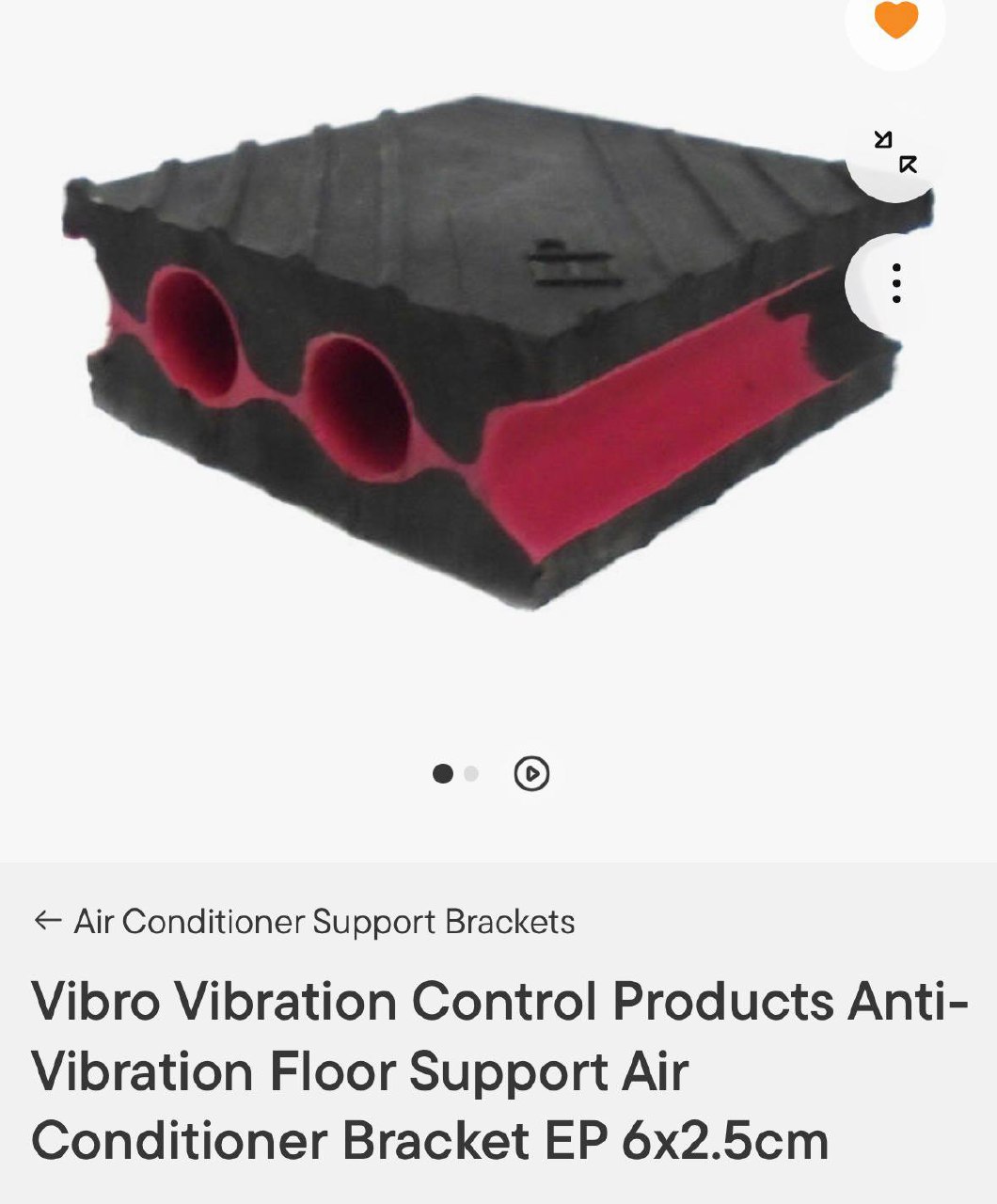 Я пошел по пути виброизоляции. Куплены на Скрудже вот такие маты, порезаны пополам в длину и уложены под лапками кондея на внешние ноги. Сами лапки притянуты немного к внешним ногам, чтоб не унесло. Да, крепления = вибромост, но я не нашел ничего нормального с полноценной развязкой.