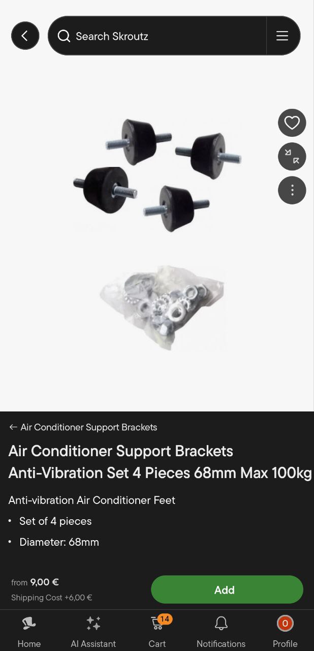 @itoolsyВот, нужно типа такой. Только вес выбрать верно. И еще, вес внешнего блока нефига не равномерно распределен. Почти весь вес - это компрессор и обвязка. Потому нужно 2 разных типа опор под разный вес.