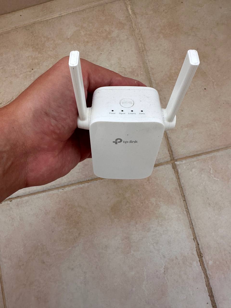 На втором этаже грусть печаль. Вот такой вот репитер стоит ровно над роутером, на той же стене, что роутер внизу (основной) и еле выдает 5% инета внизу. Что говорить про соседние комнаты. Я не знаю, что тут за экранирование, сколько тонн металла в перекрытии и какая марка бетона- но сигнала почти нет.