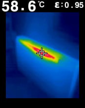 Скину сюда, если кому интересно. Температура на работающей батарее, которая с камнями внутри. Отключена сразу после съемки