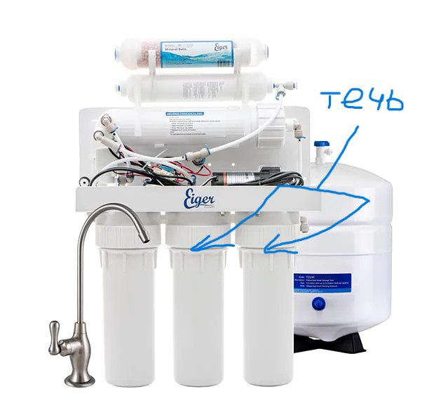 При первой же попытке его запустить полилась вода из-под резьбы колб фильтров первичной очистки.