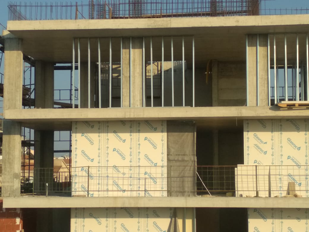 Вот еще пример заполнения пространства между колоннами, вообще без кирпича и вообще блоков. В смысле, теплотехнические свойства заполнителя между колоннами вообще важны только если у вас однослойная конструкция. А если каркас, то вся теплотехника будет обеспечена внешним утеплением которое в любом случае будет выполняться и будет эффективнее.
