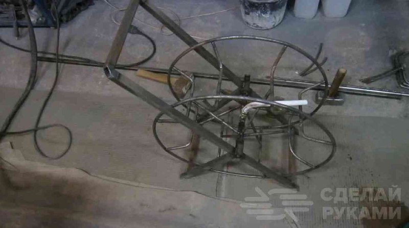 Посоветуйте, плс, из чего бы типа такой катушки смастерить, чтобы ее можно было по полю катить и метров 100 шланга намотать?