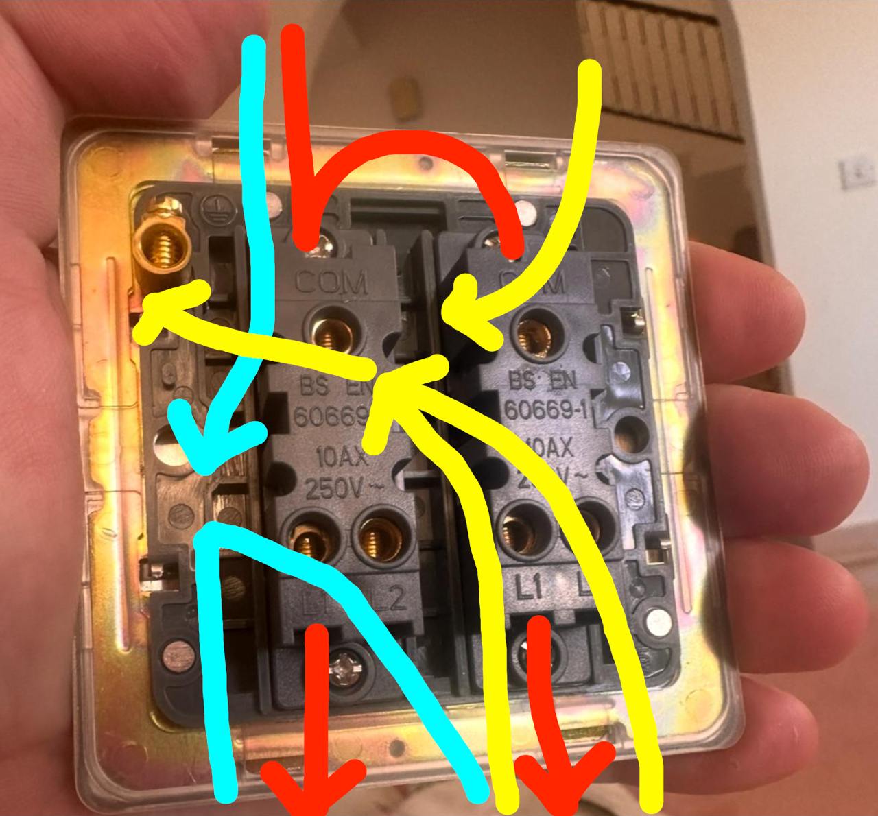 Господа и дамы, меняю розетку на двойную, будет два светильника. Верно я понимаю, что подключение идет так: