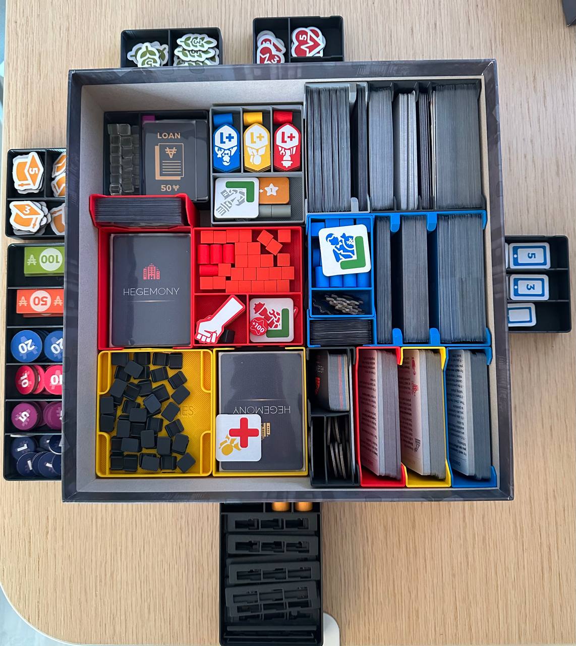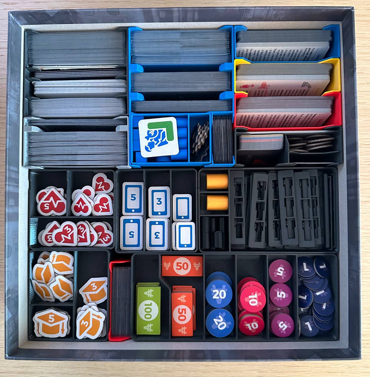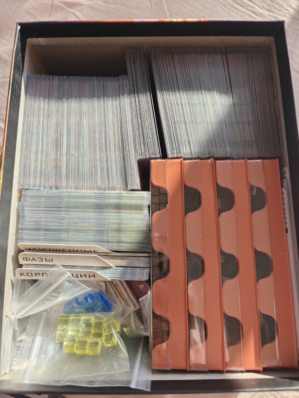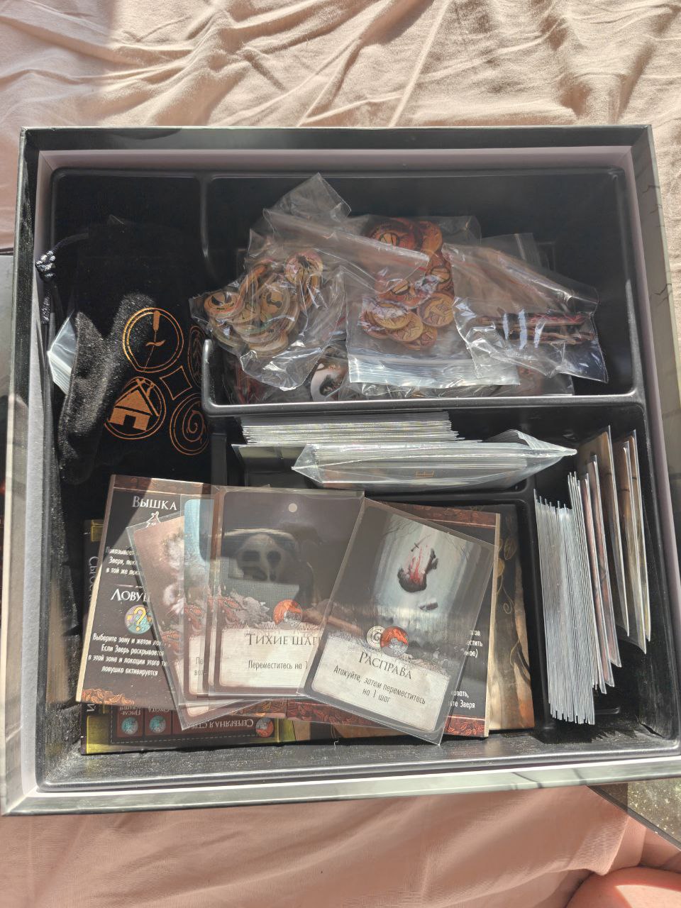 - Инсерт от Калкаред, кардинально ускоряющий сетап игры; также используется в процессе игры, облегчая логистику плюс освобождая место на столе. Позволяет хранить игру вертикально. Обзор инсерта: ссылка. Специально убедил автора открыть доставку на Кипр!
