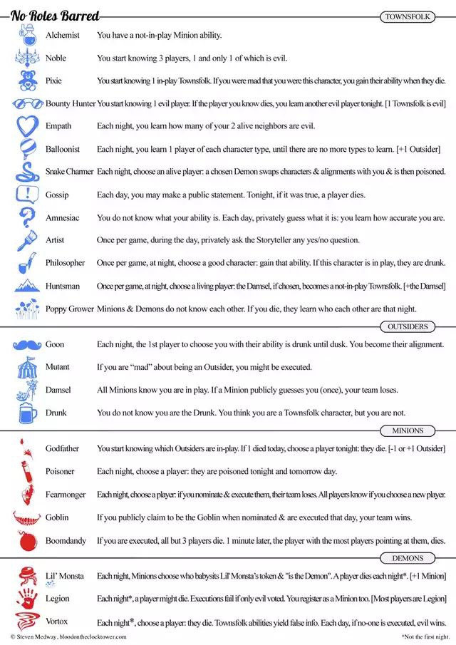 2) Inkeeper, pacifist, Proffesor, tea lady, courtier - ключевые роли, если нет хотя бы двух в игре, то всё плохо. Если у демона есть 2 открытых жетона из этих - всё еще хуже