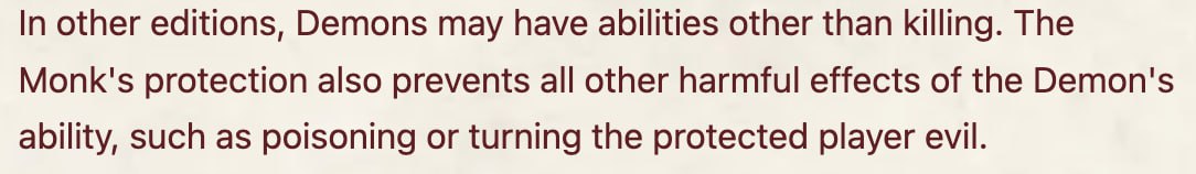 "If the Demon attacks a player who has been protected by the Monk, then that player does not die."