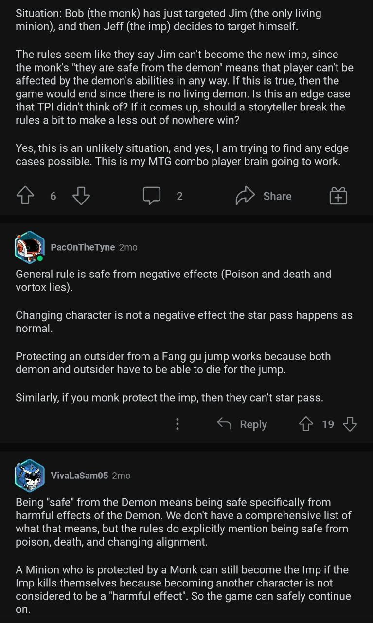 Ну строго говоря, вы оба притягиваете красное к горькому. Речь только про атаку. У Витали крайне широкая трактовка термина safe. Смотри с такой трактовкой я могу начать считать, что safe это защищён от эффектов, которые считает негативными и демон начнёт спокойно самоубивать себя через монаха.