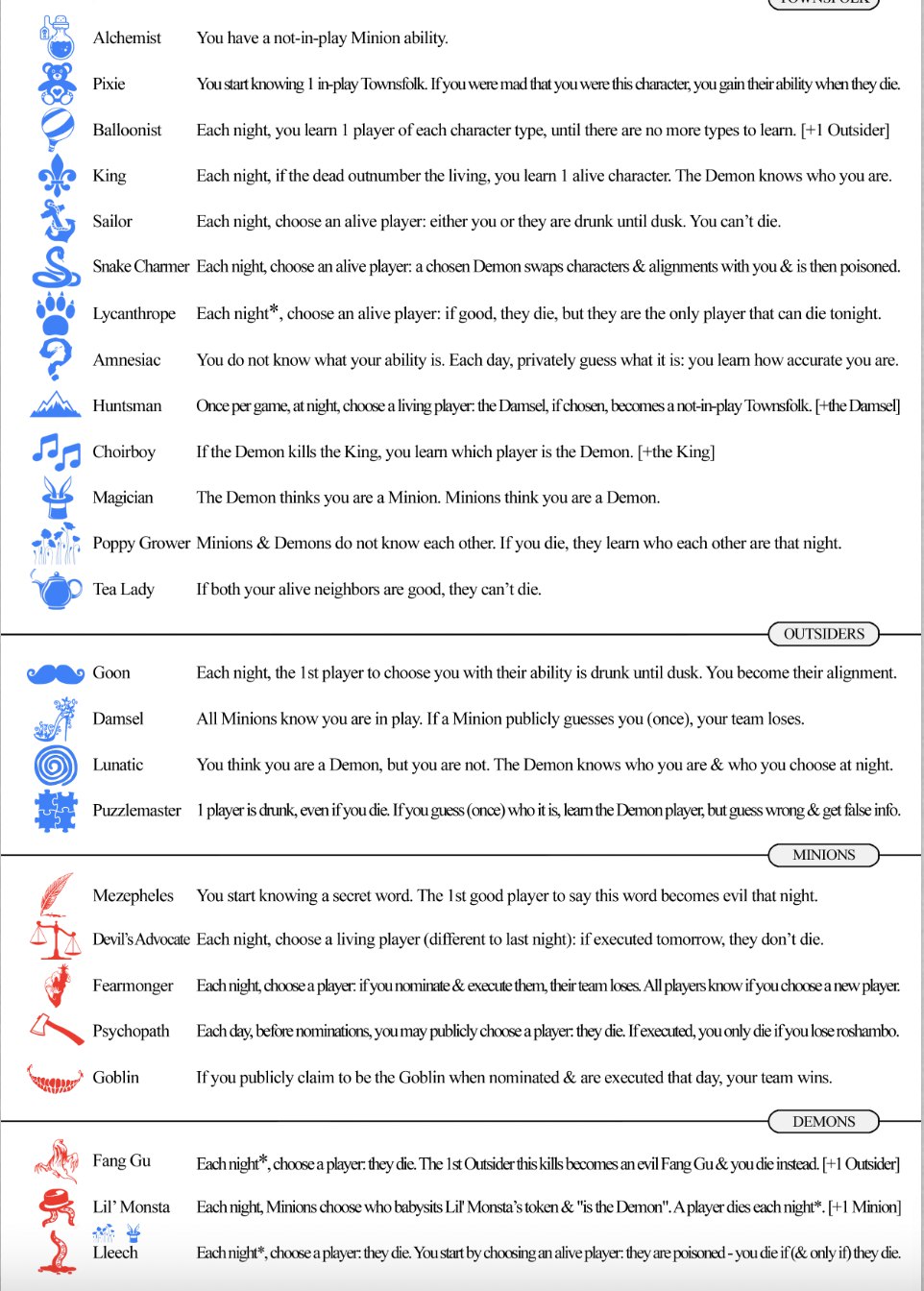 1. Did you VOTE today? - Например, перед тем как Flowergirl показать инфу, Сторителлер может разбудить Демона и уточнить у него, голосовал ли он. Эта табличка также нужна и для других ролей.