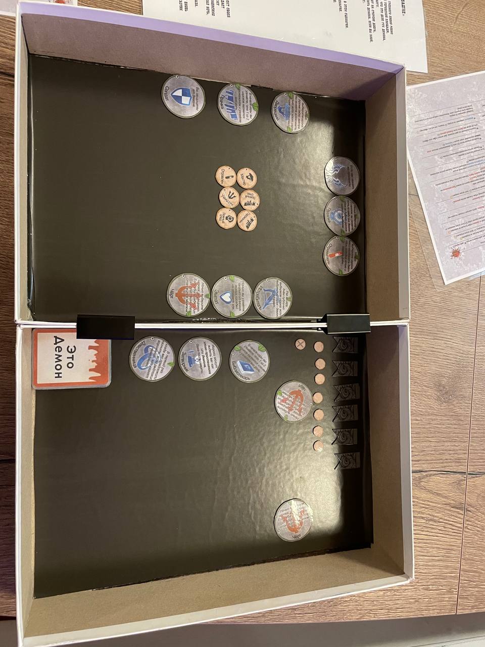 Про него спец правило есть. Оо - Organ Grinder and Preacher: Only 1 jinxed character can be in play. Evil players start knowing which player and character it is.
