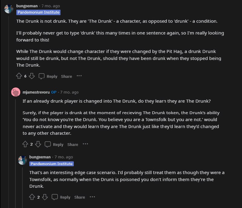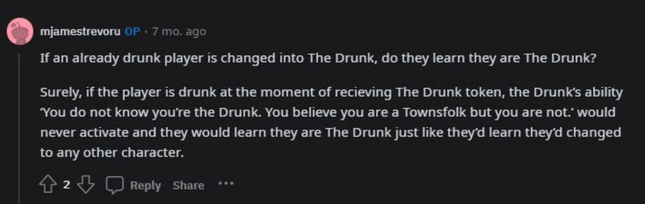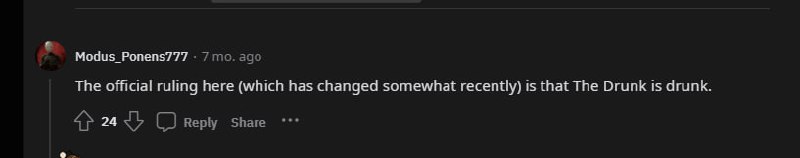 У меня в памяти точно есть фраза про то, что дранк не может быть пьян, или отравлен, но в вики этого нет.