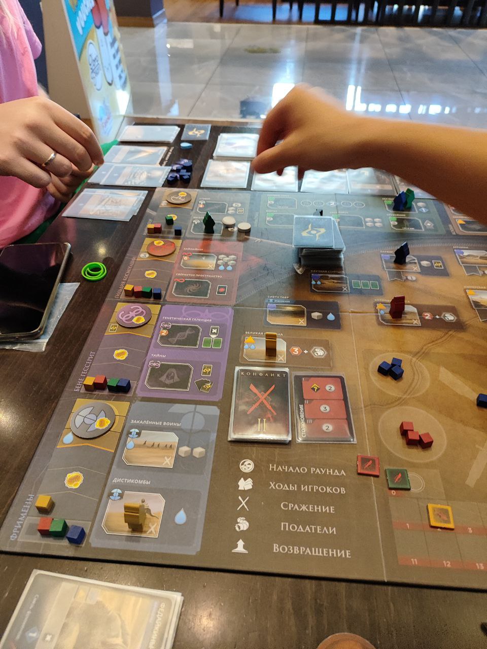 А сегодня за замечательно поиграли в Кемет, Пять племен, Пчелы, Роскошь и Котиков. И двумя столами тренировались а Дюну перед предстоящим турниром