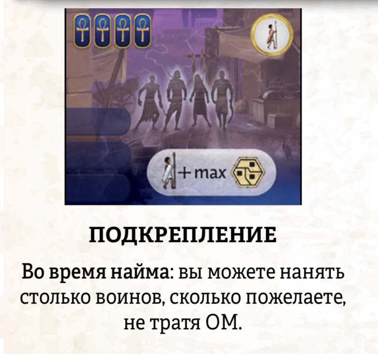 Мне кажется мы не правильно эту карточку играли при наборе войск, когда ты делаешь набор например 5 солдат - это должно стоить 4 монетки, а не 0. Просто твое действие на 1 монетку меньше стоит
