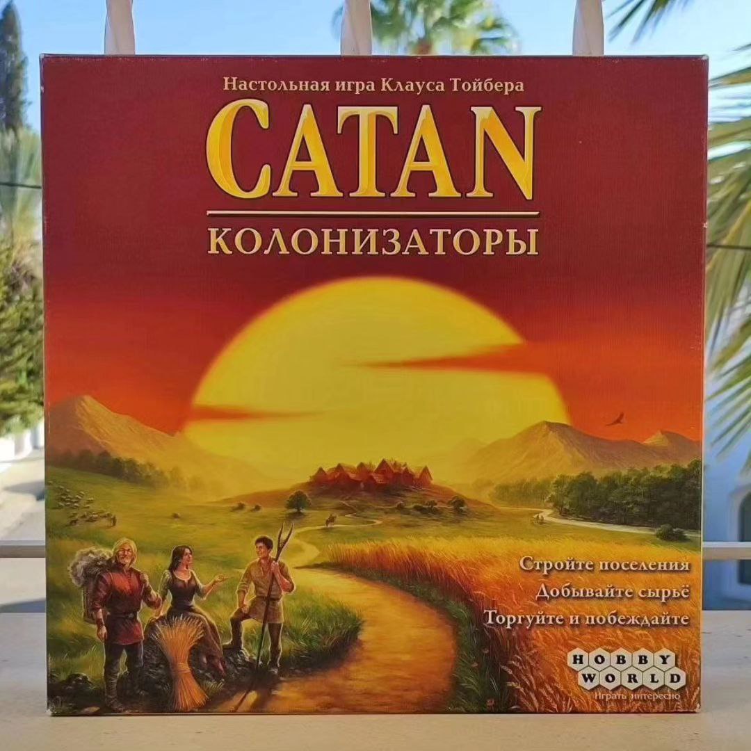 @Juka_Mal_4311🎲"Catan" - очень простая настольная стратегическая игра, где игроки поселяются на острове Катан. И там придётся собирать ресурсы (дерево, камень, глина, зерно, руда), строить поселения, города и дороги. Ресурсы получаются при выпадении числа, соответствующего территории. Игроки могут торговать ресурсами между собой или менять в банке. За ресурсы можно не только строить, но и брать карточки, среди которых есть победные очки или какие-нибудь приятные бонусы, помогающие игроку по ходу игры. Цель игры: первым набрать 10 победных очков