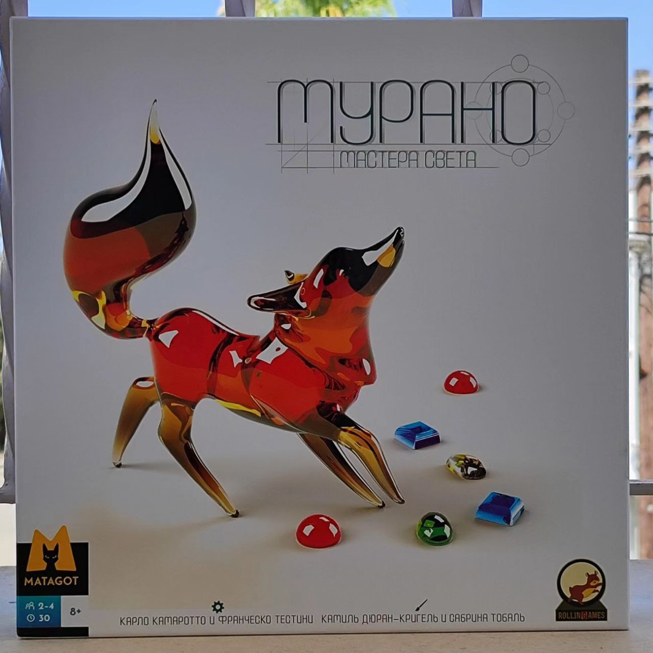 @Juka_Mal_4311🎲 Murano: Light Masters - очень красивая логическая игра с великолепными компонентами – разноцветным стеклом и крутящимся полем рынка.Ход игрока состоит из трех фаз: сбор стекла, торговля и производство товаров. В первой фазе игрок вращает голубую стрелку внутреннего кольца, получает 2 кусочка стекла, на которые она указывает. В фазе торговли игрок может выполнить одно из трех действий. Можно выложить кусочки стекла с верстака на угловые деления рынка и взять из запаса кусочки, указанные на сегменте внешнего кольца. Также можно купить любые кусочки стекла с рынка за 2 лиры или продать любое количество стекла со своего верстака по лире за штуку. Партия завершается, когда какой-то игрок создает изделие, выложив последнюю карту с руки. Его соперники выполняют по одному последнему ходу. Далее участники считают заработанные лиры. Побеждает самый богатый игрок.