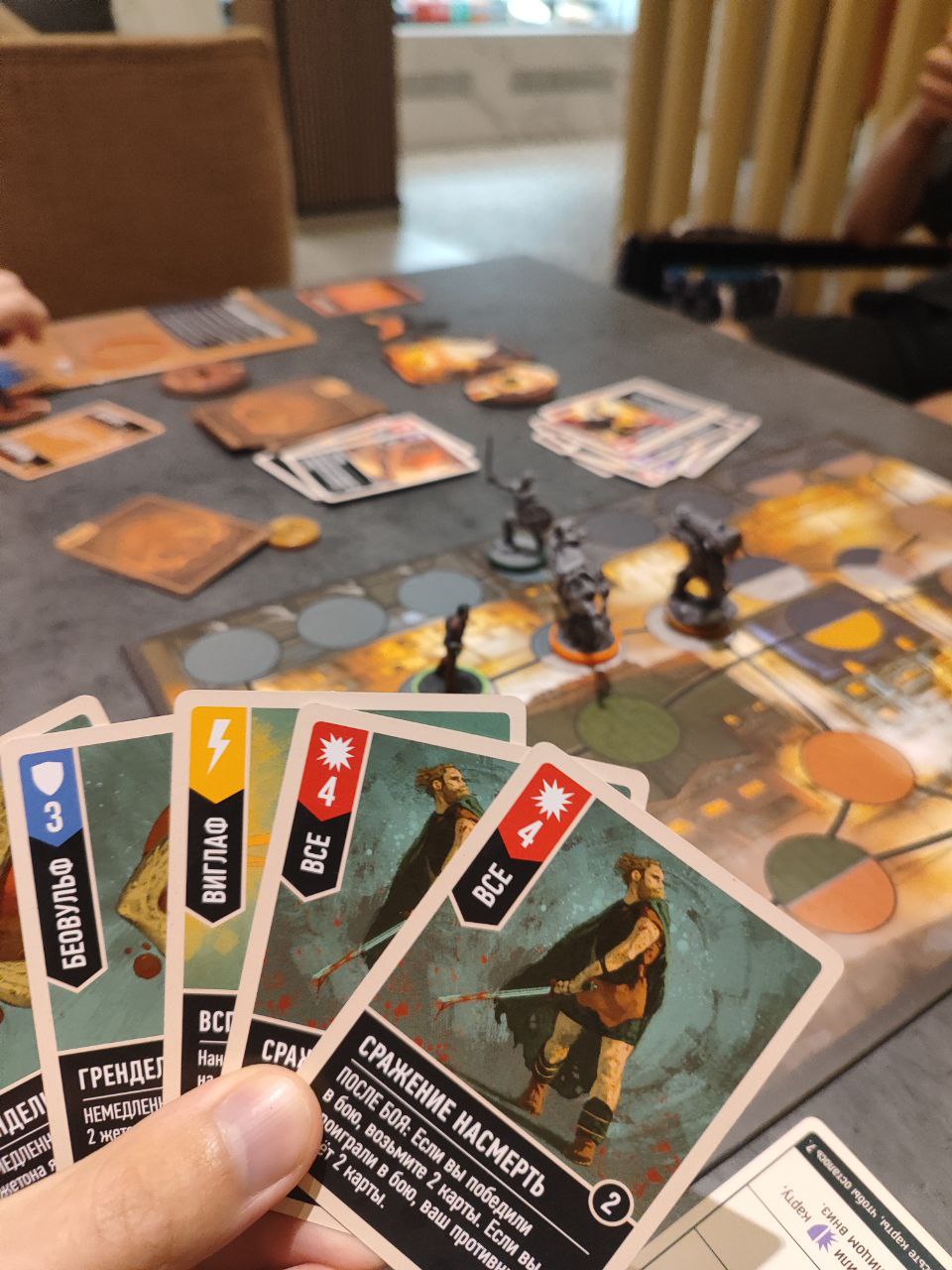 Игра на русском языке, все карты в премиум протекторах.