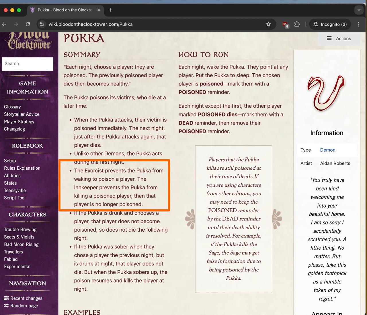 Ну мы говорили, что если отравленного на ночь, когда он должен умереть, защищает кто-нибудь вроде инкипера, то отравленный не умирает и отравление спадает
