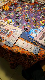 Главный минус игры: неймоверно долгий сетап, особенно с миньками. А также нужен реально гигантский стол под неё.