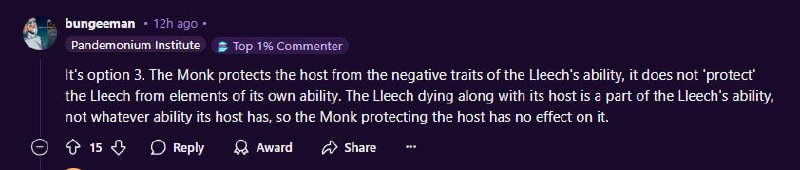 а почему по той же логике, монах не защищает вообще от отравления Лича? почему только на 1 ночь?