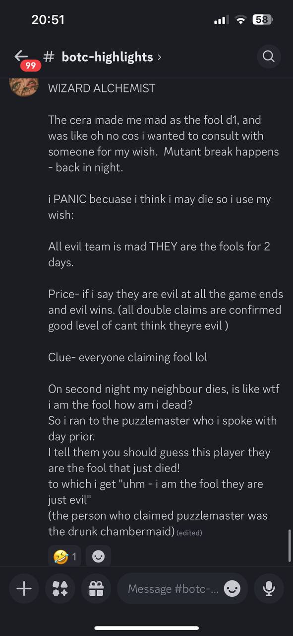 На конец второго дня, когда желание закончилось я начинаю хихикать в микрофон со словами «у меня есть объявление для города» демон (мой сосед) отправляет мне сообщение