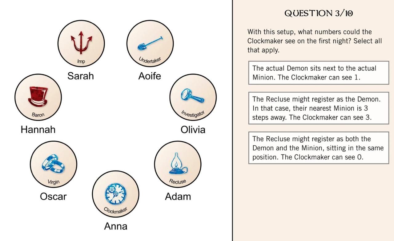Причём в каждой категории есть особый персонаж - который может быть любым таунсфолком/аутсайдером/миньоном/Демоном соответственно - вообще не из этого сценария, по усмотрению СТ. Но такой только один в каждой категории.