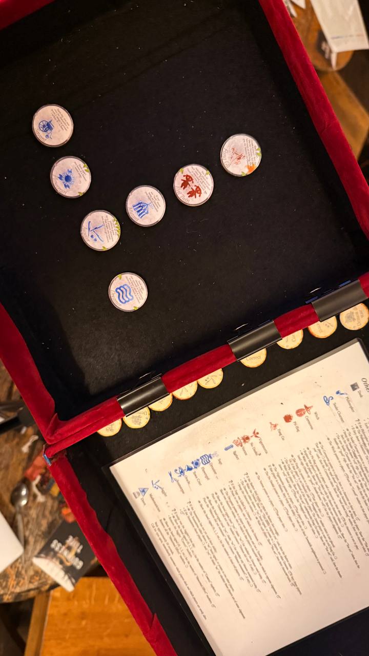 Мы нашли группу по башне в Йорке с самодельным гримуаром (у них деревянные жетончики для городской площади!)