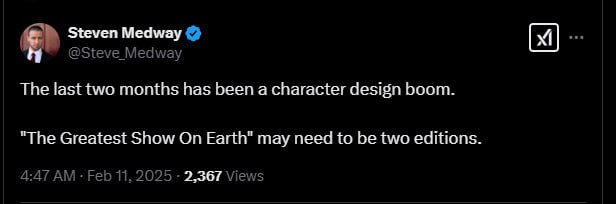 Сегодня Стив написал, что их там просто прорвало и они наделали туеву тучу новых персонажей. Столько, что нужно будет 2 издания "The Greatest Show On Earth".