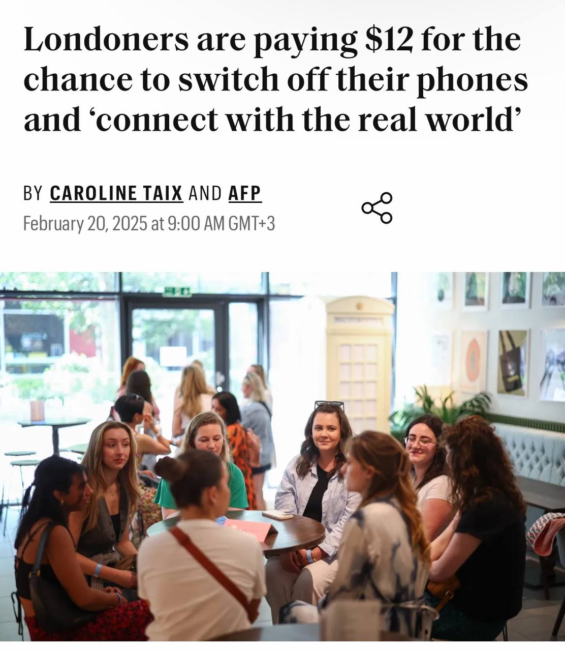 В Лондоне стали проводить платные офлайн-вечера, для тех, кто устал от телефона и хочет отдохнуть. Местные предприниматели просекли тренд на диджитал-детокс и берут по 12 долларов за двухчасовое общение друг с другом без телефона.