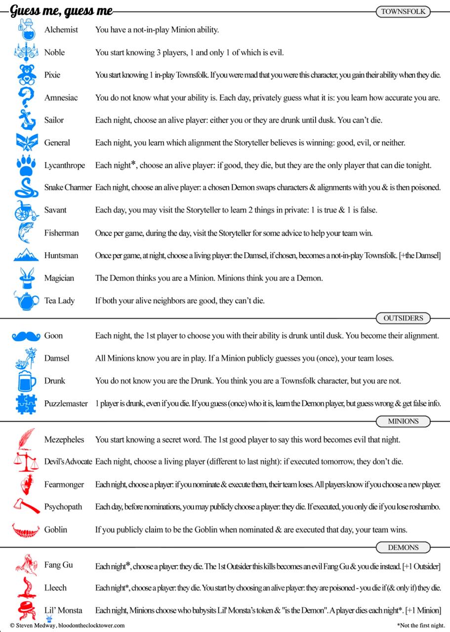 У нас снова на Тинсивиль народ перебирается. Еще один нашёл сценарий: Еретик, Гоблин, Алхимик.... только Демон тут Казали, который знает своего миньона. Но он может быть Лунатиком, да и против Еретика лома всё равно нет. Выглядит весело.