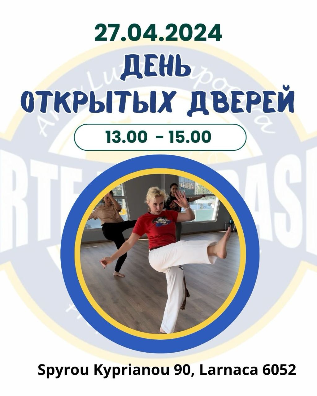 27 апреля, в нашем центре капоэйры в Ларнаке, мы проводим день открытых дверей для детей и взрослых.