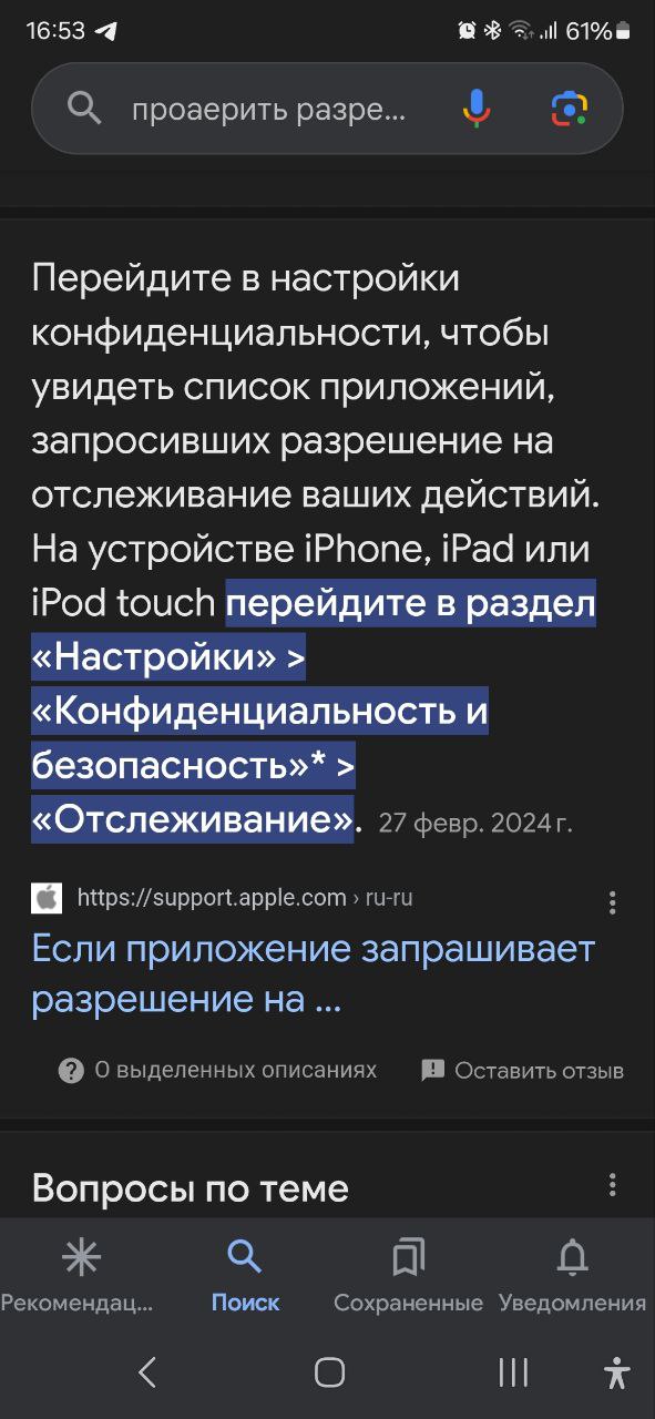 Я про разрешение приложения на уведомления, звонки и тому подобное