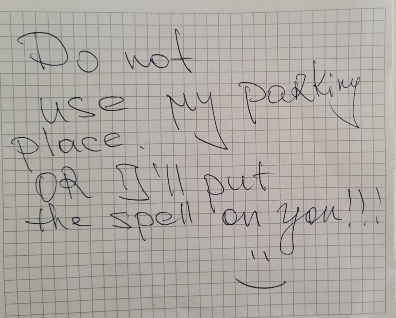Да просто почерком маньяка написала "dear stranger, REMOVE YOUR CAR FROM MY PLACE!