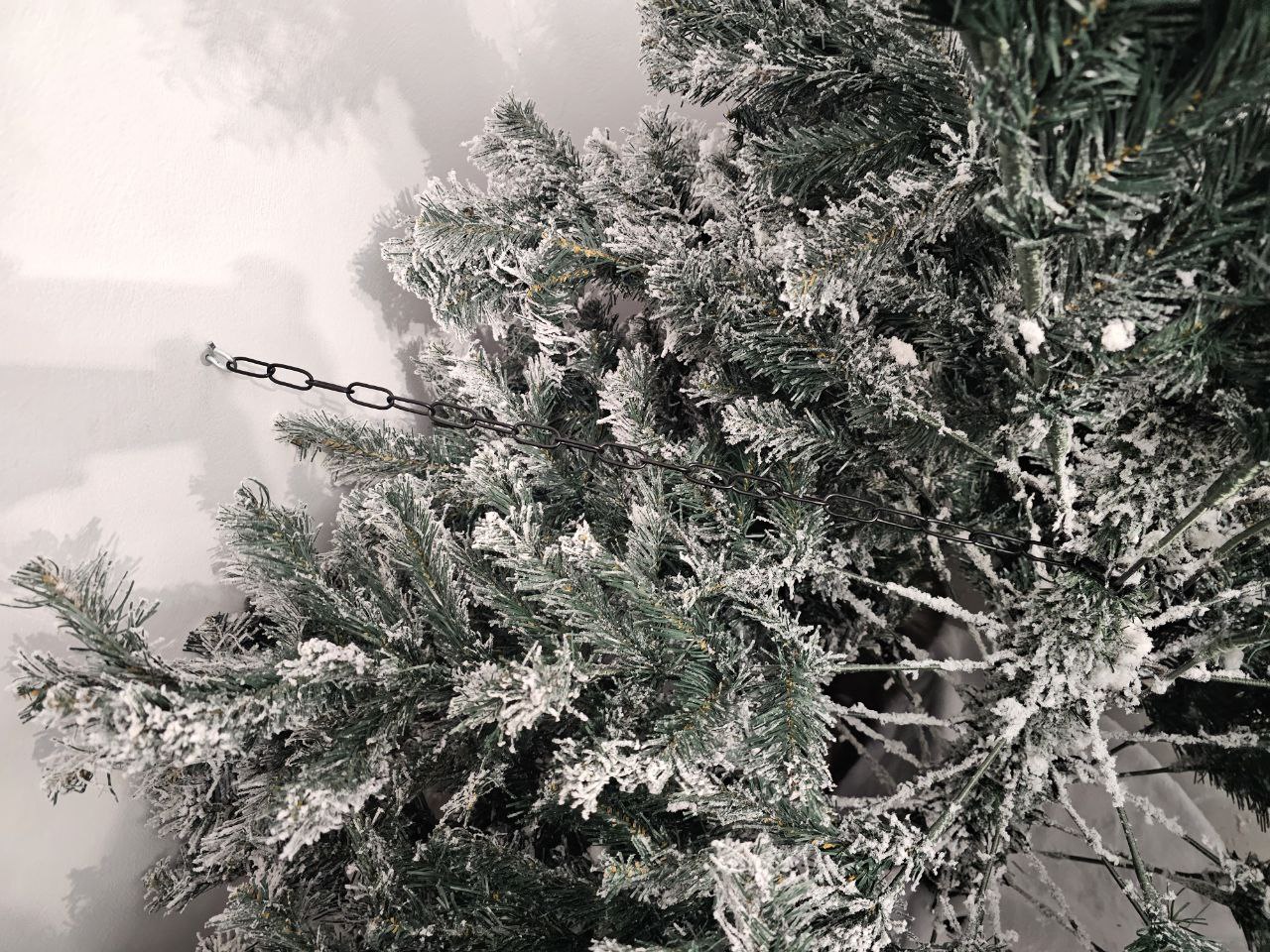Цепей три. На высоте "под подоконником" притянута к двум стенам, сходящимся в углу, и где-то на уровне 170см верхушка притянута по направлению "в угол", так как она достаточно крепко прижата к самому углу, то должно быть надежно
