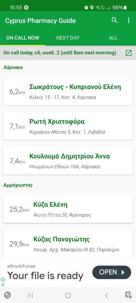 Спасибо, да, набрала у них открыто, те 4 которые в городе написано что они открыты - все закрыты ..